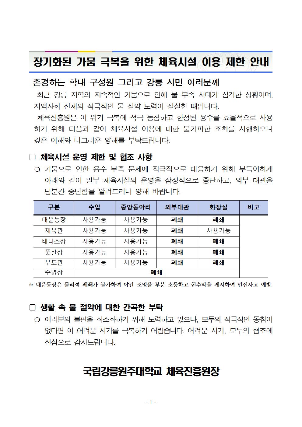 [체육시설] 체육시설 이용 제한 안내