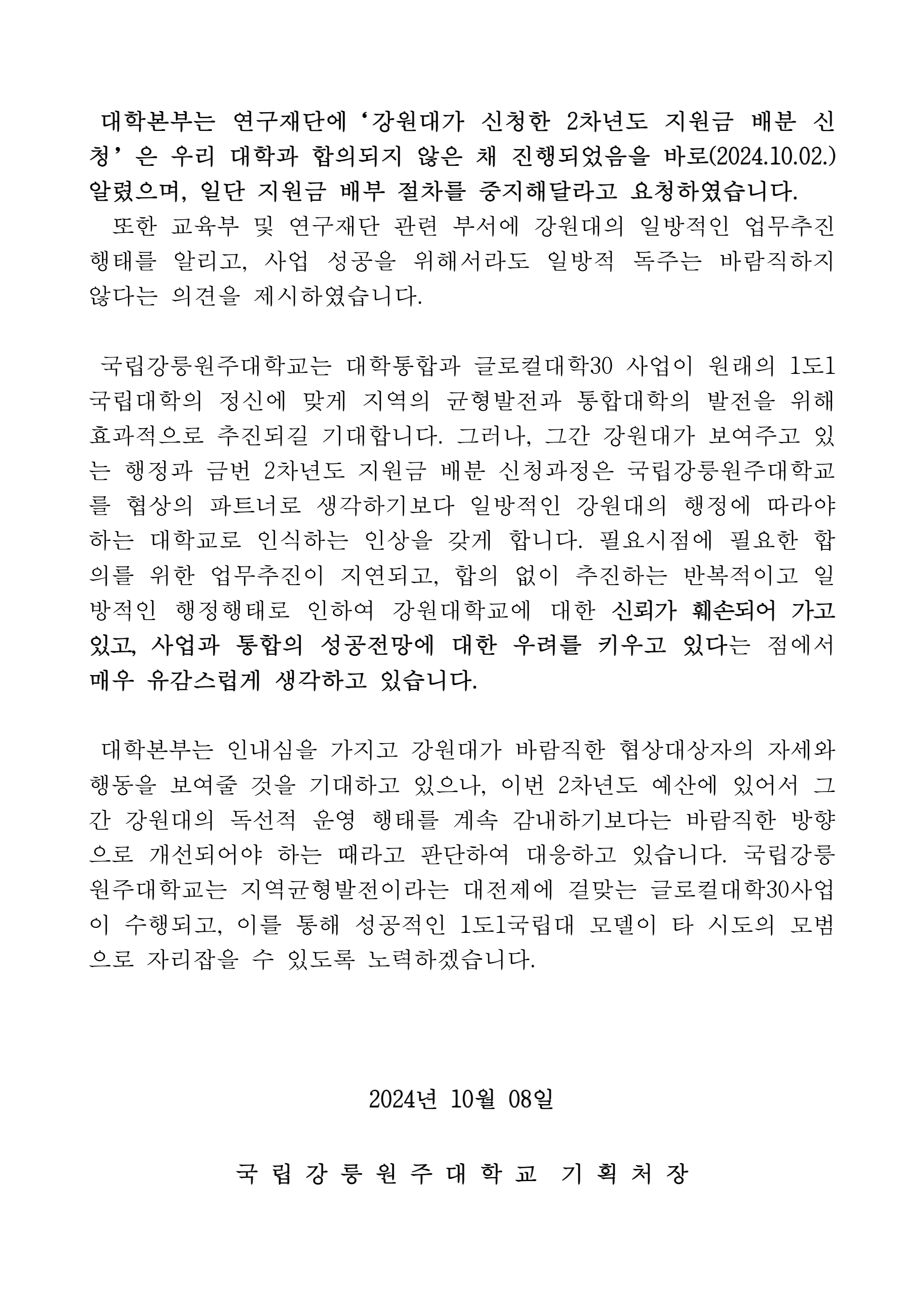 글로컬대학30 사업 추진과 관련하여 올림